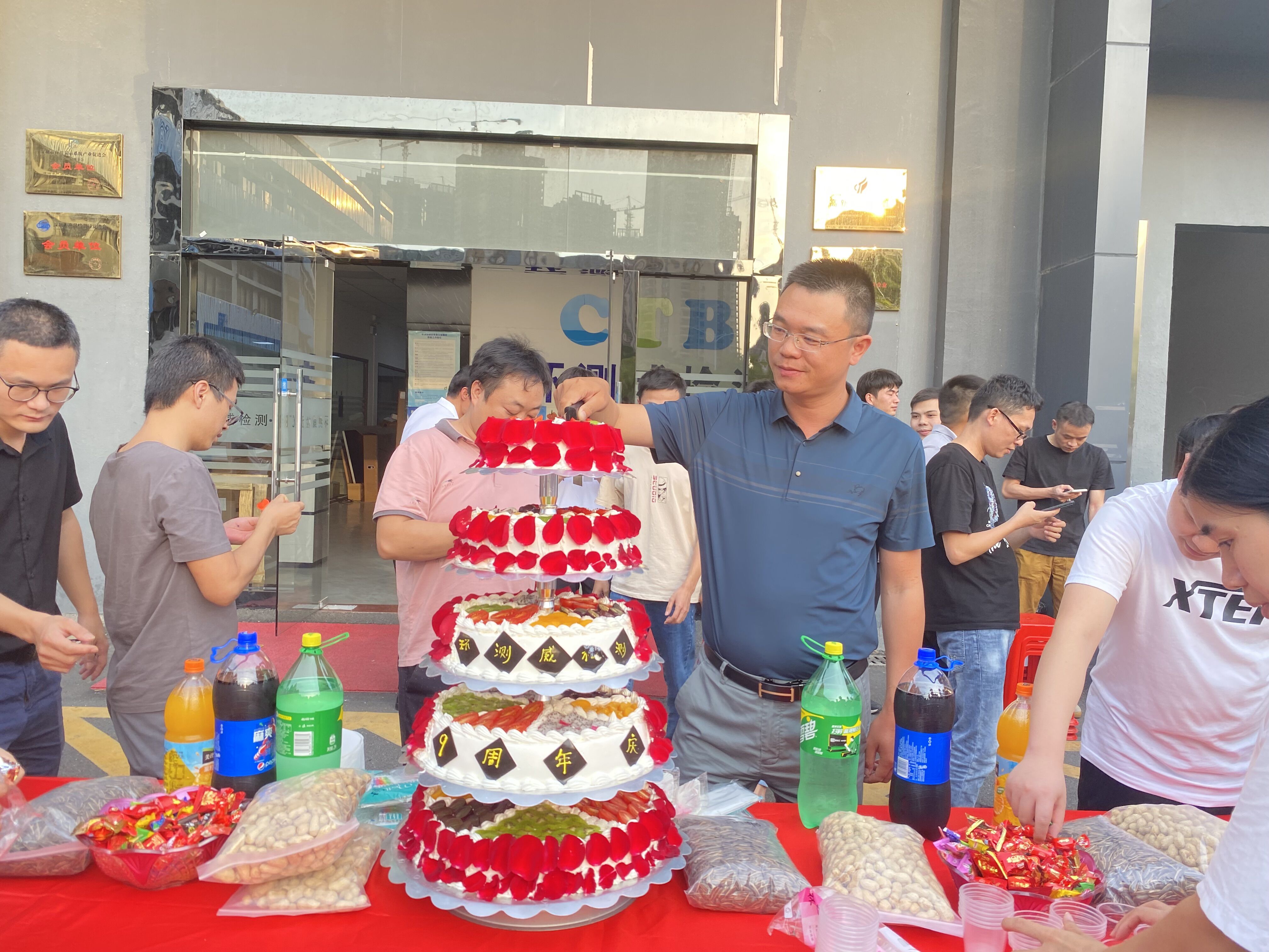 環測威9周年生日當天,全體員工在公司園區里開展了生日會,一起切蛋糕,舉杯相慶。隨著生日蛋糕的出場,將氣氛推到了更高點,一份蛋糕,承載了歷年無數環測威員工的甜蜜的回憶以及辛勤的付出,無論是擁有八九年工齡的老員工,還是剛剛邁進環測威大門的新人,大家都一直在為環測威的發展默默付出、辛勤勞作。
